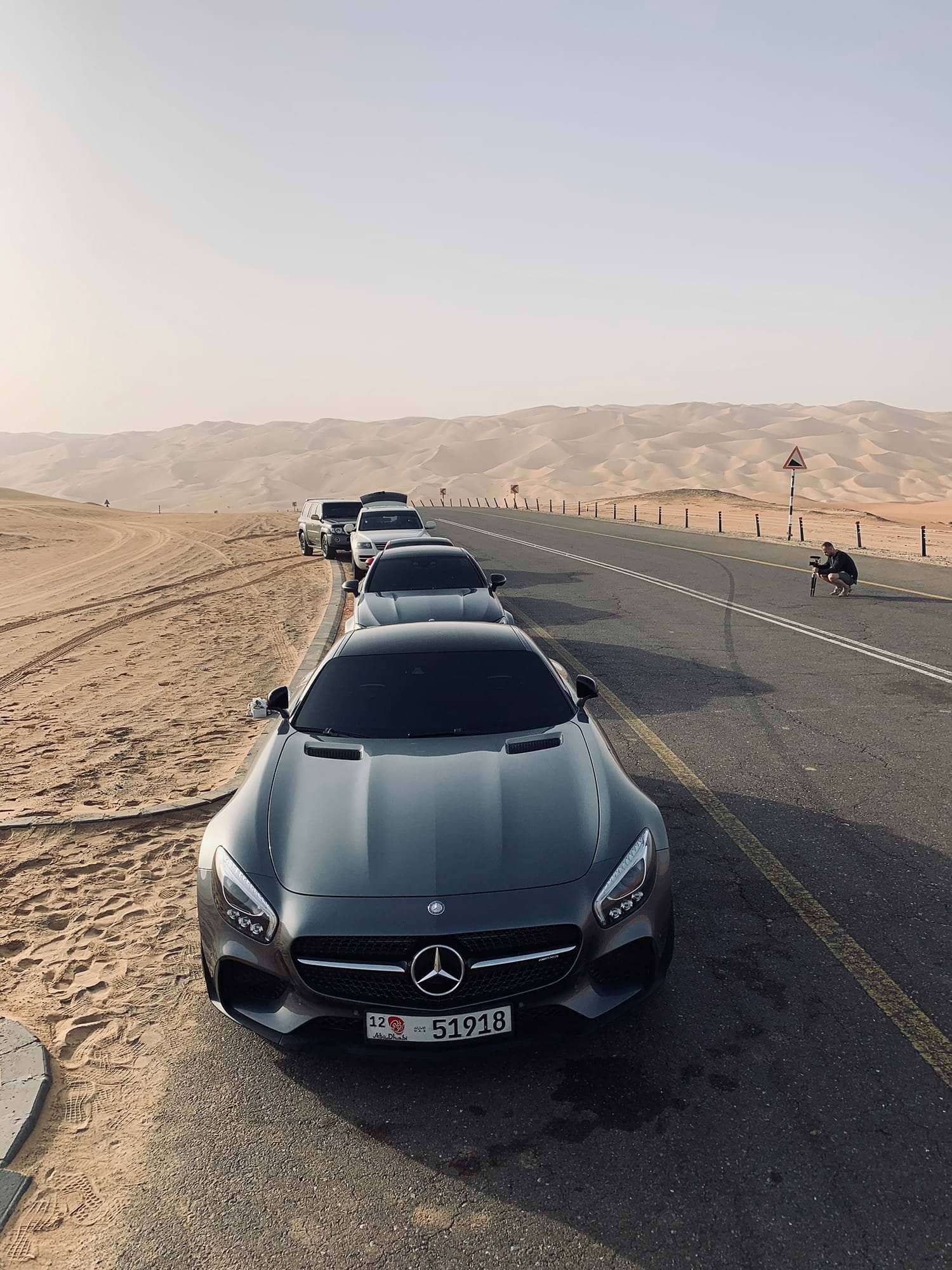 Noch bevor die ersten Sonnenstrahlen den Sand erhellen, stehen wir bereits mit Storyboard und Kamera auf den Straßen von Fast & Furious 7 – inmitten endloser Dünen. Wer diesen Film kennt, weiß, was jetzt kommt: Full-Speed! Ein Wüstenrennen zwischen dem vermutlich brutalsten Porsche 911 Turbo, einem Mercedes AMG GT S und dem C63S Coupé – tuned by PP-Performance. Hautnah rasen die Edelkarossen an unserer Linse vorbei, der Windsog zieht uns regelrecht an den Asphalt. Sie jagen sich und du spürst jede Vibration, es kribbelt auf der Haut. Das Brummen in den Ohren bringt uns auf Hochtouren. Aber eines ist sicher - bei diesem Dreh käme sogar Vin Diesel ins Schwitzen. Während die PS-Boliden Kraftstoff tanken, speisen wir im Liwa Hotel und drehen im Anschluss weiter bis Sonnenuntergang, bevor es auch schon wieder zurück zum Headquarter geht - denn wir sind noch lange nicht am Ende.